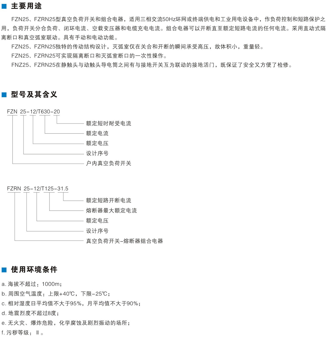 FZN25-12系列户内高压真空负荷开关
